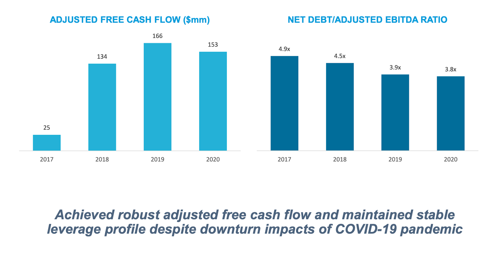 Net debt leverage ratio has historically been 3-3.5x. After the divestiture, the leverage ratio will be below 1.5x, which the CFO basically said is too low. Management is targeting 2-2.5x over time – depending on how aggressive they are with buybacks and M&A – and was clear that buybacks are the best way to create value aside from funding organic growth and tuck-in acquisitions.